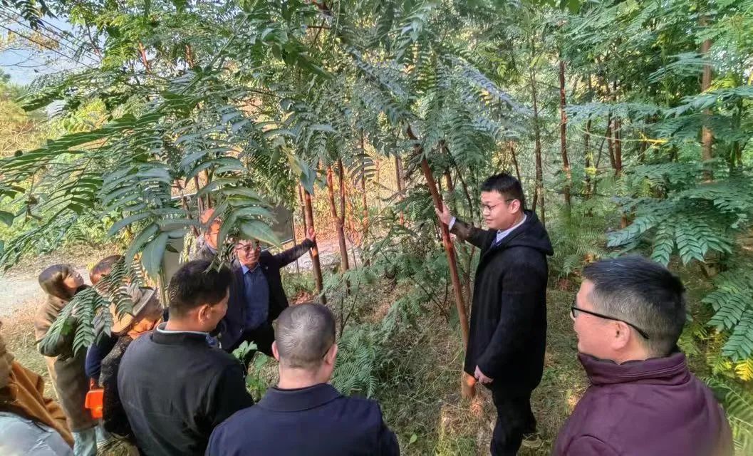 座谈会后,师生党员一行前往韶关市乳源粤凰瑶药发展科技有限公司的瑶药驯化与应用基地,实地调研瑶药驯化情况和为村民增收的应用前景。公司管理层黄明亮介绍了中药材—金毛狗蕨项目的运营现状、合作模式及未来发展,双方就人才培养、共商共研等事宜展开了深入调研交流。公司负责人陈小凤长期钻研瑶药驯化项目,聚焦将属于国家保护野生植物的中药材驯化并为药企提供原材料,通过创新创业支持乡村振兴。在商学院党委、区域国别学院党委和韶关校友会的共同见证下,刘方龙和黄明亮分别代表校企双方签订了“学生校外创新创业实践基地”合作协议,肖锋代表创新创业学院向韶关市乳源粤凰瑶药发展科技有限公司授予“学生校外创新创业实践基地”牌匾。