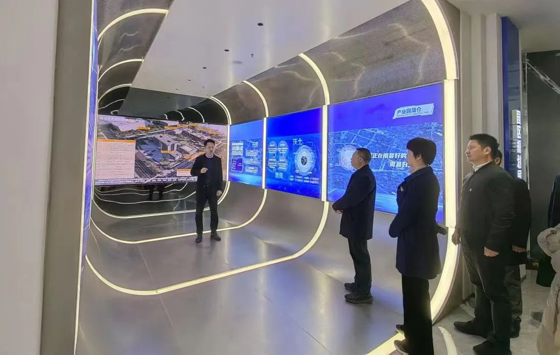 在粤港澳大湾区数据应用产业园,校地一行参观了产业园的数据展厅,了解了园区以数据应用为核心驱动力,致力于构建一个集大数据多元化功能与广泛业务范畴于一体的大数据特色产业园的发展历程。通过文字材料和视频展示,大家深入感受到科技发展带来的日新月异以及大数据技术在推动产业升级、促进经济社会发展中的重要作用。