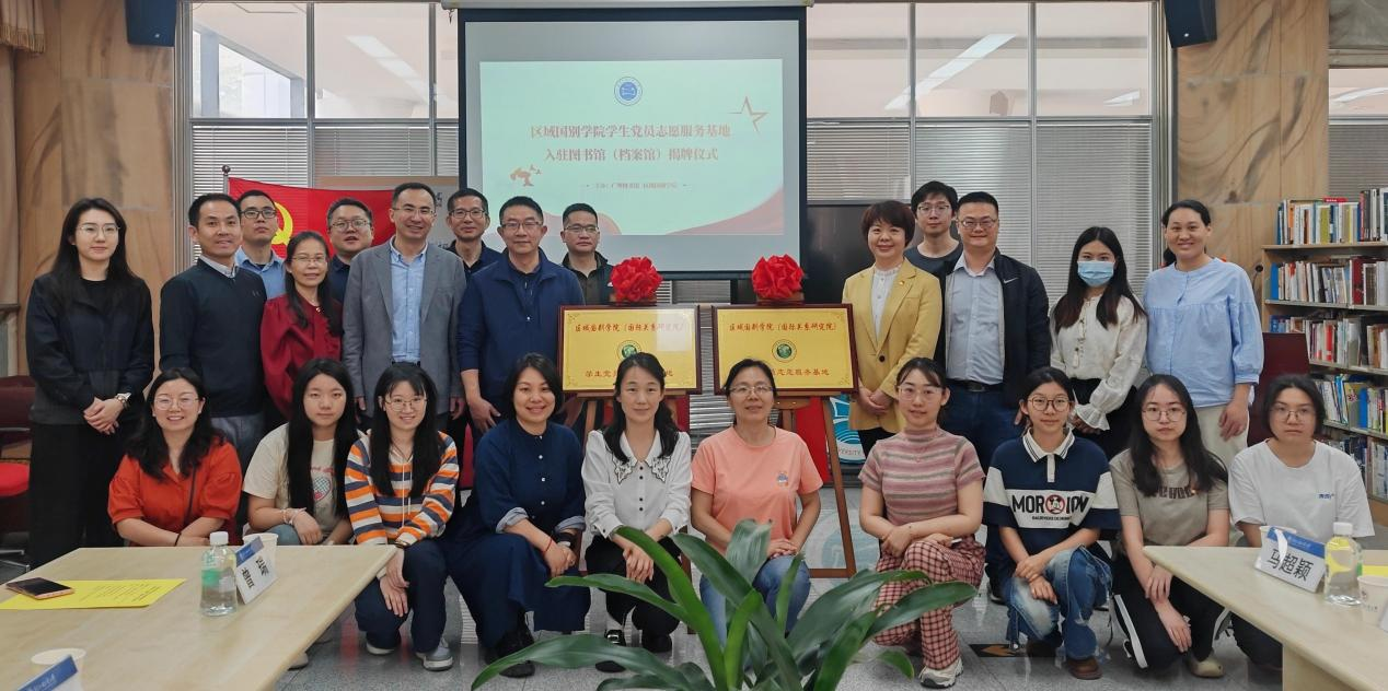 本网讯 为推动党建与业务深度融合,增强党性并提高素质,弘扬志愿服务精神,为我院学子提供更广阔的劳动实践平台,4 月 9 日,我院党员志愿服务基地入驻图书馆 (档案馆) 揭牌仪式在大学城校区图书馆二楼悦读沙龙室隆重举行。图书馆(档案馆)党委书记李津、副馆长俞欣,组织员、办公室主任王栋,我院党委书记袁薇佳、党委副书记陈健、团委书记王梓旭及师生代表共计 20 余人参加活动。
