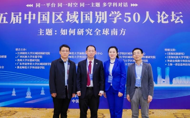 本网讯 3月28日至30日,第五届中国区域国别学50人论坛活动在杭州举行,本届论坛以“如何研究全球南方”为主题,由教育部国别和区域研究工作秘书处、高校区域国别学人才培养与学科建设联盟等主办,江西财经大学区域国别研究院、广东外语外贸大学区域国别学院等联合主办。来自全国60余所高校、科研机构的100余位专家学者齐聚一堂,探讨交流新时代区域国别学学科建设和人才培养问题。我校副校长申明浩教授、资深教授袁东振、区域国别学院(国际关系研究院)和区域国别研究院院长茅银辉教授等参加会议。