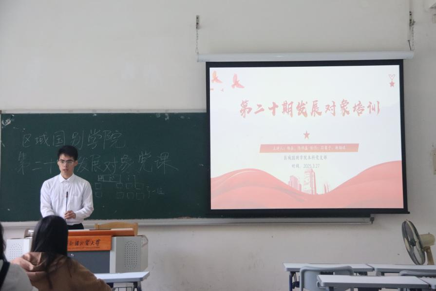 本网讯 为深入学习贯彻全国两会精神,引导青年学子将个人成长与国家发展紧密结合,3月27日下午,我院分别于白云山校区和大学城校区举行书记党课暨“思政第一课”。院党委书记袁薇佳、党委副书记陈健以“2025年两会政府工作报告要点学习”为主题讲授专题党课,40名发展对象参加学习。