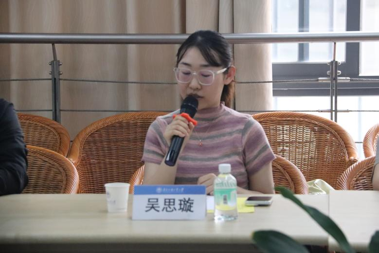学生代表吴思璇分享了图书馆志愿服务中的收获与感悟,体会到志愿服务中的价值与温暖,并表达作为一名党员与志愿者的双重使命就是“自律为先”,遵守图书馆制度维护公共秩序,以实际行动影响身边同学,强调“青春因奉献而精彩”。