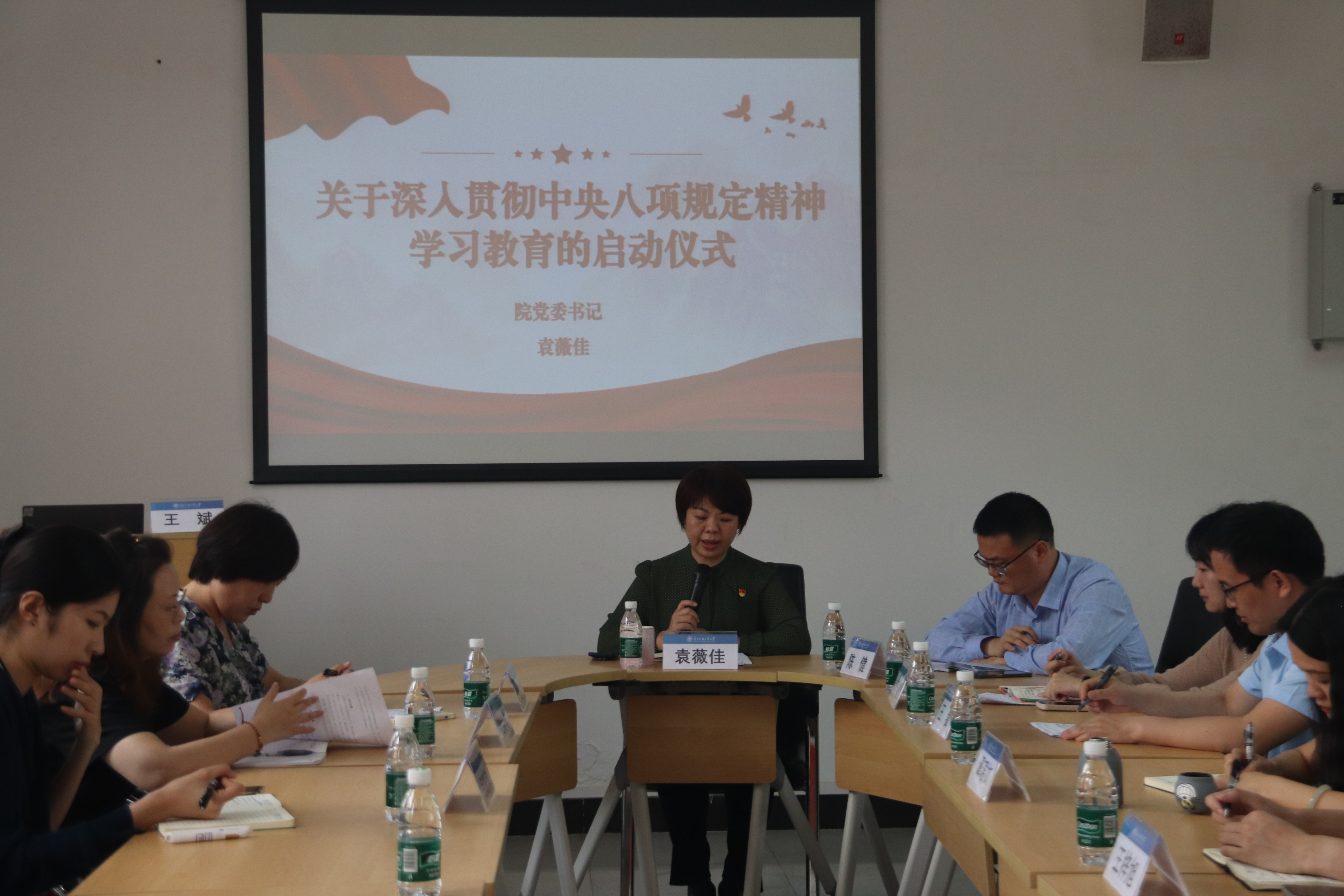 随后,袁薇佳传达了深入贯彻中央八项规定精神学习教育的相关内容并结合学院实际对学院党委、各师生党支部的学习安排与落实要求进行了具体部署。她强调,领导干部要聚焦主题带头学,严格落实“第一议题”学习制度等,扎实开展学习研讨;各师生支部要以点带面,依托“三会一课”、主题党日活动等,通过交流研讨、案例学习等方式深入学习,不断推动党的创新理论入脑入心入魂。