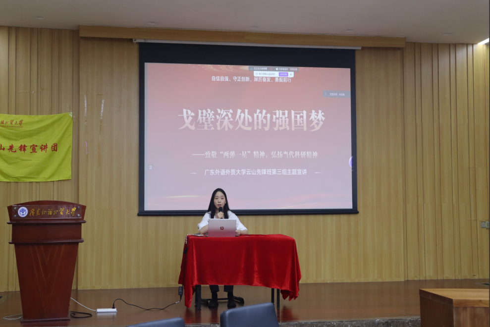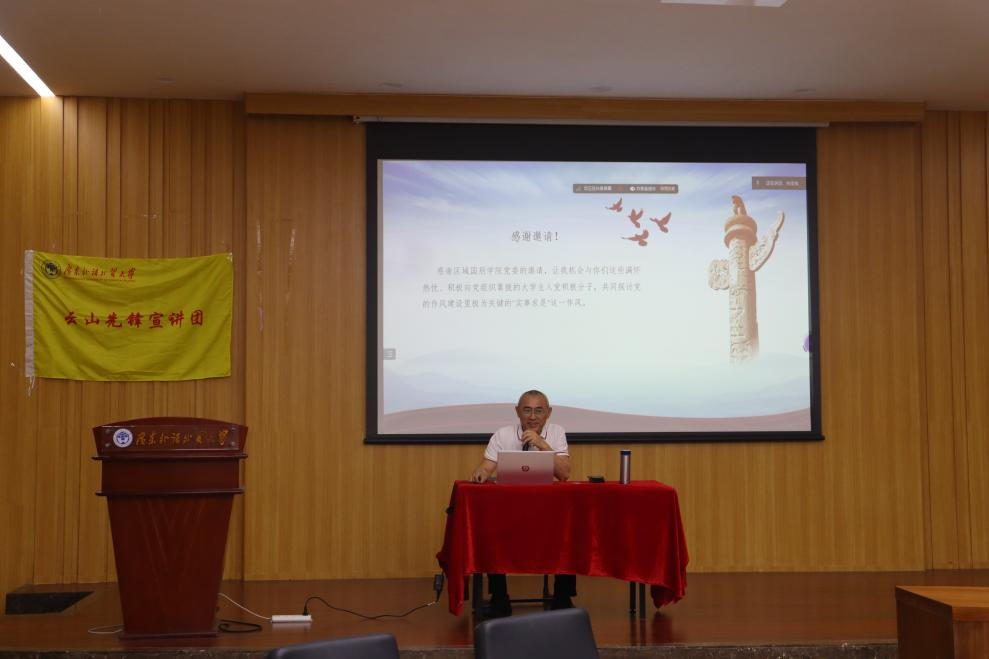 随后,云山先锋宣讲团成员以“两弹一星”和“延安精神”为主题,通过王淦昌和邓稼先两名党员的事迹阐释“两弹一星”精神的内涵和启示,并结合党史阐述延安精神的内涵及其焕发的时代生机。宣讲以鲜活的案例架起历史与现实的桥梁,激发同学们传承红色基因的使命感,彰显新时代青年勇于担当、砥砺前行的精神品质。