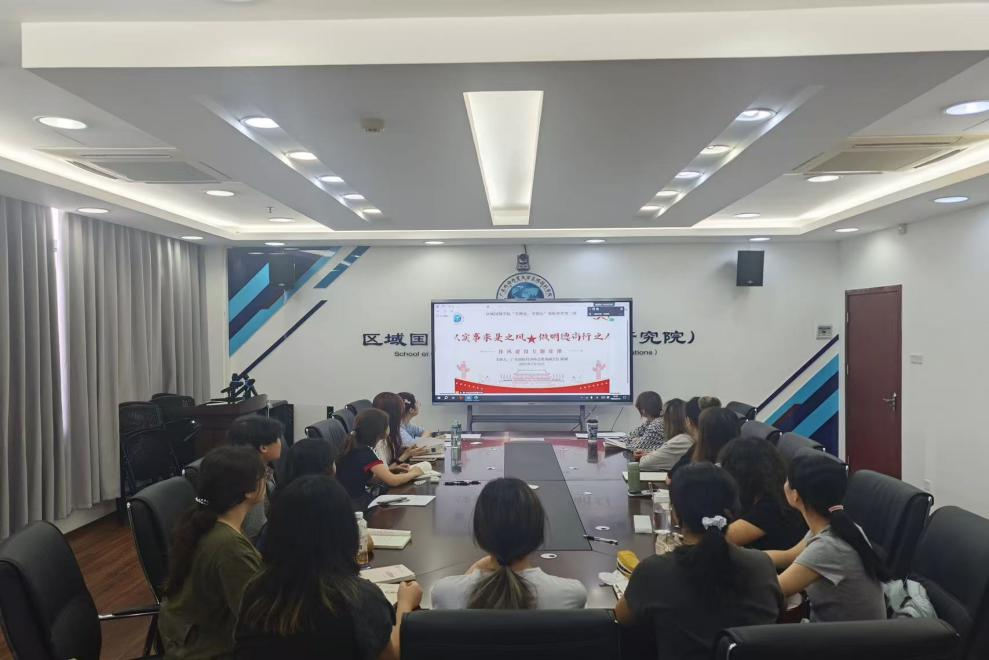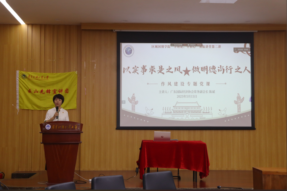 陈斌在“以实事求是之风,做明德尚行之人”的作风专题党课中,深入剖析了作风建设在党史中的发展脉络和深远意义,并结合党史案例和印度工作经历从本体论、认识论和方法论维度分享对“实事求是”的理解和应用。他最后寄语我院学子,要将“明德尚行,学贯中西”的校训精神与“实事求是”相结合,内化于心、外化于行,勇敢面对挑战,不断追求卓越,为实现中华民族伟大复兴的中国梦贡献青春力量!