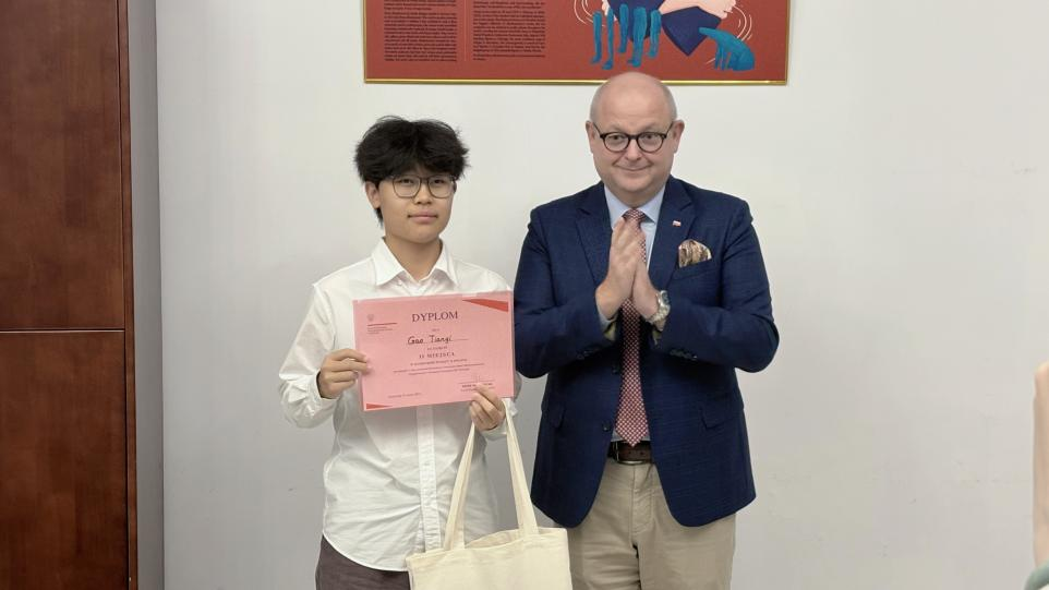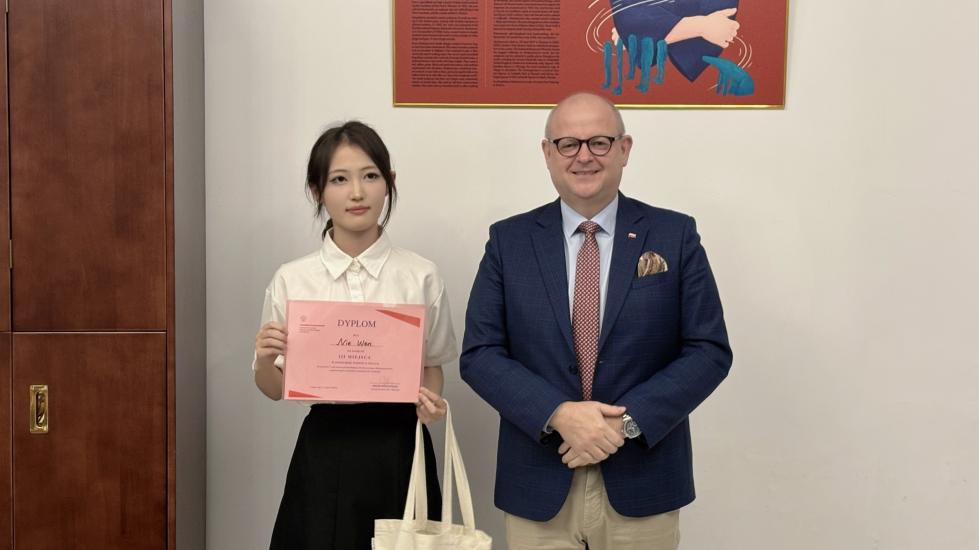 经过评委们的认真评审,大一第一名是李志成真同学、第二名是高天祎同学、第三名是陈海婷同学;大二第一名是张志昊同学,第二名是张子恒同学,第三名是聂雯同学。在阅读理解竞赛中,张子恒同学以出色的文本解析能力,斩获桂冠。在赛后的颁奖仪式上,总领事亲自为获奖学生颁奖。除此之外,参与竞赛的其他学生也收获了奖状、小奖品和鼓励。