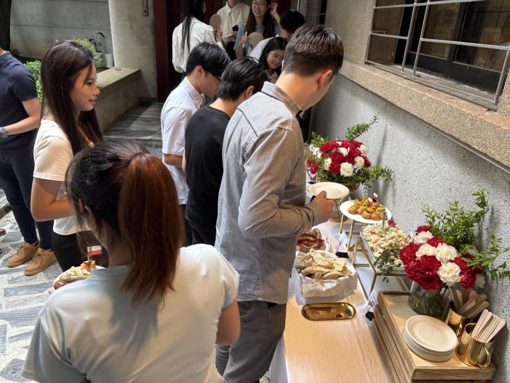 竞赛活动一结束,窗外随之飘来了迷人的香气。大家围聚一堂,共同品尝领事馆精心准备的特色烧烤美食。金黄油亮的波兰烤肠在炭火上滋滋作响,表皮酥脆、肉香浓郁;绵密细腻的土豆泥搭配独特香料,口感醇厚;松软的面包带着麦香,可裹夹烤肠与配菜,每一口都令人回味无穷。大家在欢声笑语中、在美食的香气中,感受异域风情,交流愈发热烈,现场氛围温馨而欢快。