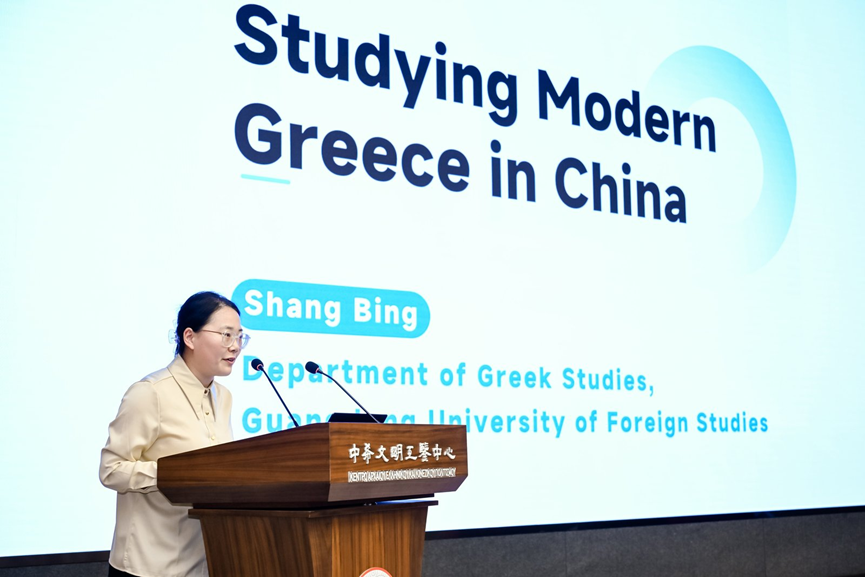 “全球视野下的现代希腊研究”平行论坛上,尚冰以题为《中国的当代希腊研究》主旨报告。她首先梳理了中国当代希腊研究的热点议题以及相关研究机构的基本情况。接下来,她以我院希腊语系为例,阐述了希腊语系教师团队依托广外中东欧研究中心和国际移民研究中心所取得的科研成果,并介绍了在外语学科区域国别研究转向的背景下,该系人才培养模式的改革进展。她指出,随着区域国别学在中国成为“显学”,中国的当代希腊研究迎来了全新的发展机遇,这为中希两大文明之间的交流互鉴开辟了更广阔的空间。在随后的圆桌交流环节中,与会学者就“如何加强对现代希腊的研究”这一议题展开了进一步讨论。