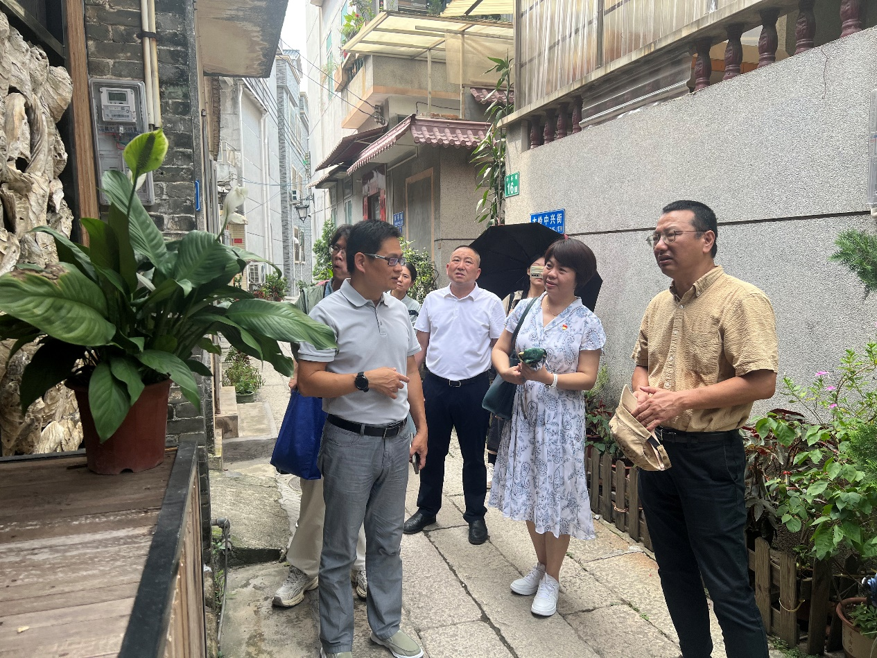 调研团队首先抵达拥有900多年历史的中国历史文化名村、获推荐参评联合国“最佳旅游乡村”称号的石楼镇大岭村。团队一行实地考察了大岭文创艺术集聚区的建设进展,深入了解古村与现代文旅产业融合发展的创新实践。随后,团队沿着玉带河畔,步行至龙津桥、陈氏大宗祠,细致调研了大岭村深厚的祠堂文化底蕴及文物保护工作的成效。通过对大岭村传统民居空间格局和独特建筑特色的考察,师生们直观感受到了岭南古村落的历史风貌和乡村振兴的生动实践。