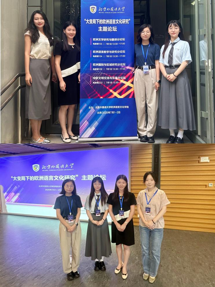 本网讯 7月1日至2日,大变局下的欧洲语言文化研究主题论坛(2025)在北京外国语大学召开。此次会议设有“欧洲文学研究与翻译”、“欧洲语言教学与研究”、“欧洲国别与区域研究”和“中欧文明交流与互鉴”四个分论坛,旨在共同探讨大变局下欧洲语言文化研究的现状及未来发展趋势,进一步推动中欧人文交流与合作。我院捷克语系主任蔡洪召,匈牙利语专业负责人王梦圆,波兰语系教师梁小聪,塞尔维亚语(克罗地亚语)系教师马曼露和王晓伊参加论坛并发言。