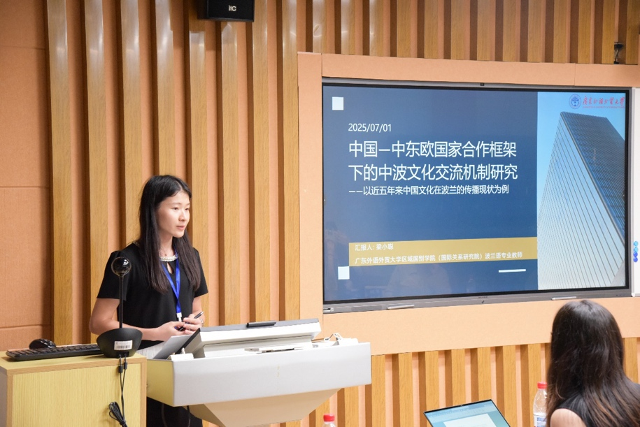 在“中欧文明交流与互鉴”分论坛上,梁小聪发表了题为《中国—中东欧国家合作框架下的中波人文交流机制研究——以近五年中国文化在波兰的传播现状为例》的报告,介绍了致力于推动中波文化交流的波兰政府机构和民间协会、汉语在波兰的推广情况、波兰出版社和学术期刊对中国文化研究的关注度、波兰汉学家和外交家对中波交流做出的积极贡献等,指出“政府—机构—民间”三大层面的中波人文交流机制需不断完善,共同推动中波人文交流事业的繁荣进步。