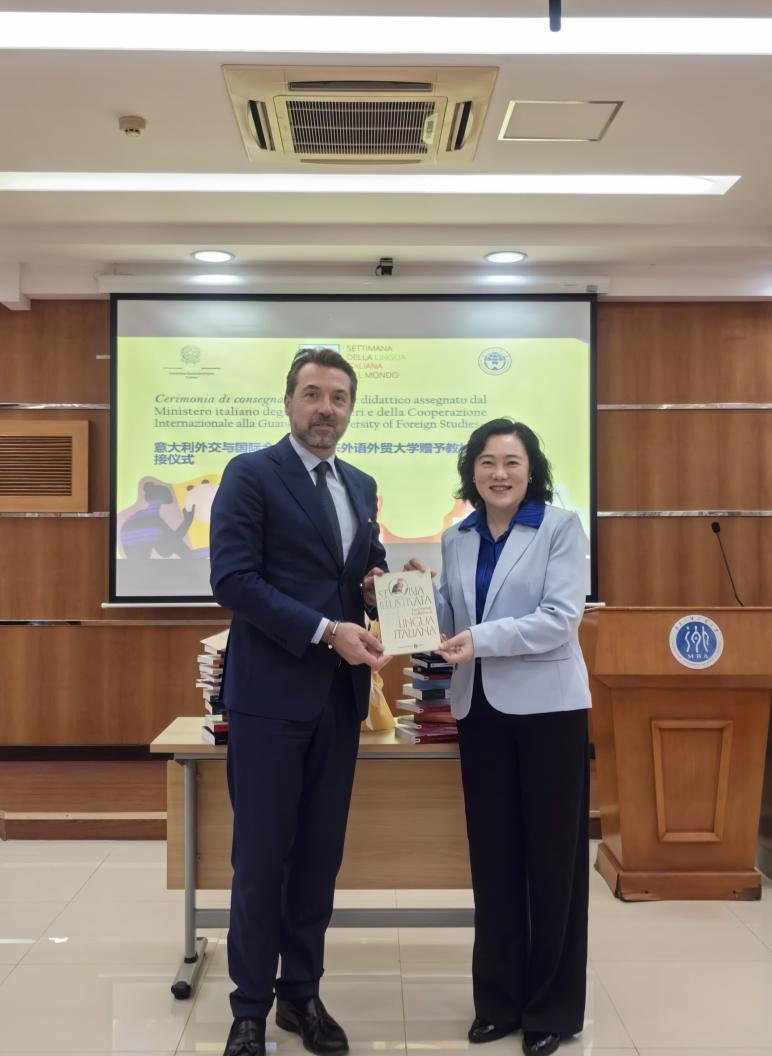 赠书仪式不仅是知识的传递,更是中意两国教育文化合作的生动体现。这些书籍将丰富学校的教学资源库,为意大利语专业的教学提供有力支撑,同时也为师生们搭建起更直接的文化交流桥梁,助力大家在语言学习中感受意大利文化的独特魅力。