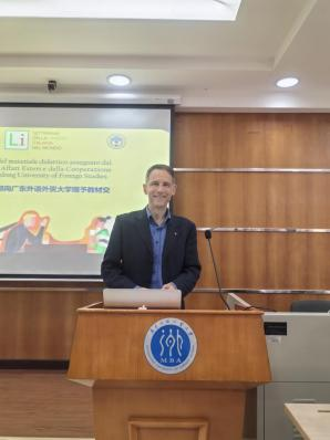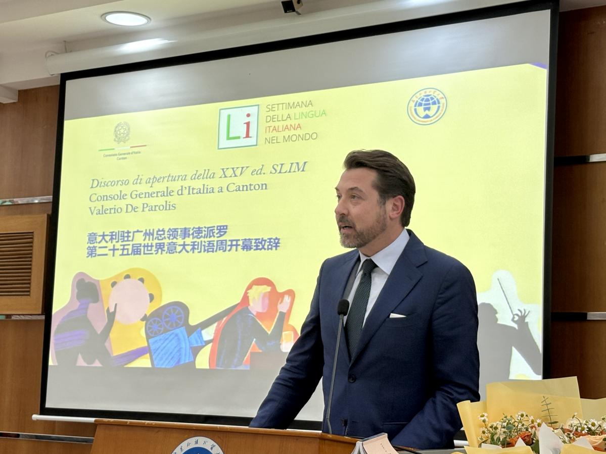 意大利驻广州总领事德派罗先生在致辞中,对广外的热情接待和大力支持表示诚挚感谢,尤其感谢学校党委书记石佑启教授长期以来对中意教育文化合作的高度重视。他表示,能在这样一个聚焦意大利语言与文化的特殊场合与师生们相聚,感到由衷的喜悦,同时也对广州航海学院师生的积极参与给予了高度赞赏。