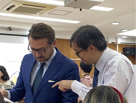 意大利驻广州总领事德派罗先生在活动间隙,同与会师生互动,大家围绕中意语言文化教育合作现状与未来展开探讨,德派罗先生肯定了所有意语工作者的付出。