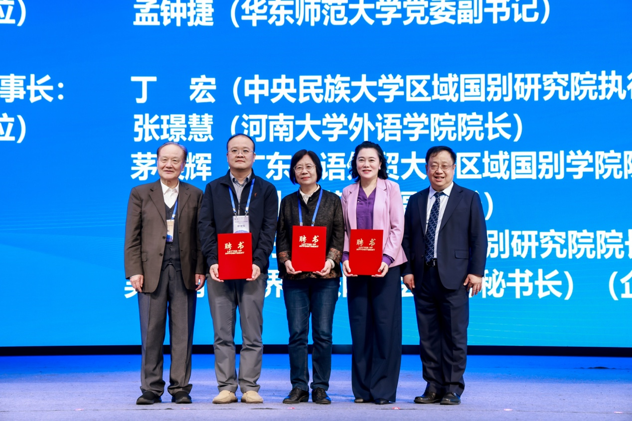广东外语外贸大学区域国别学院院长茅银辉教授、区域国别学院副院长韩永辉教授及塞尔维亚语系主任徐恒祎副教授一行应邀赴杭州参加会议,茅银辉教授被聘为联盟副理事长。