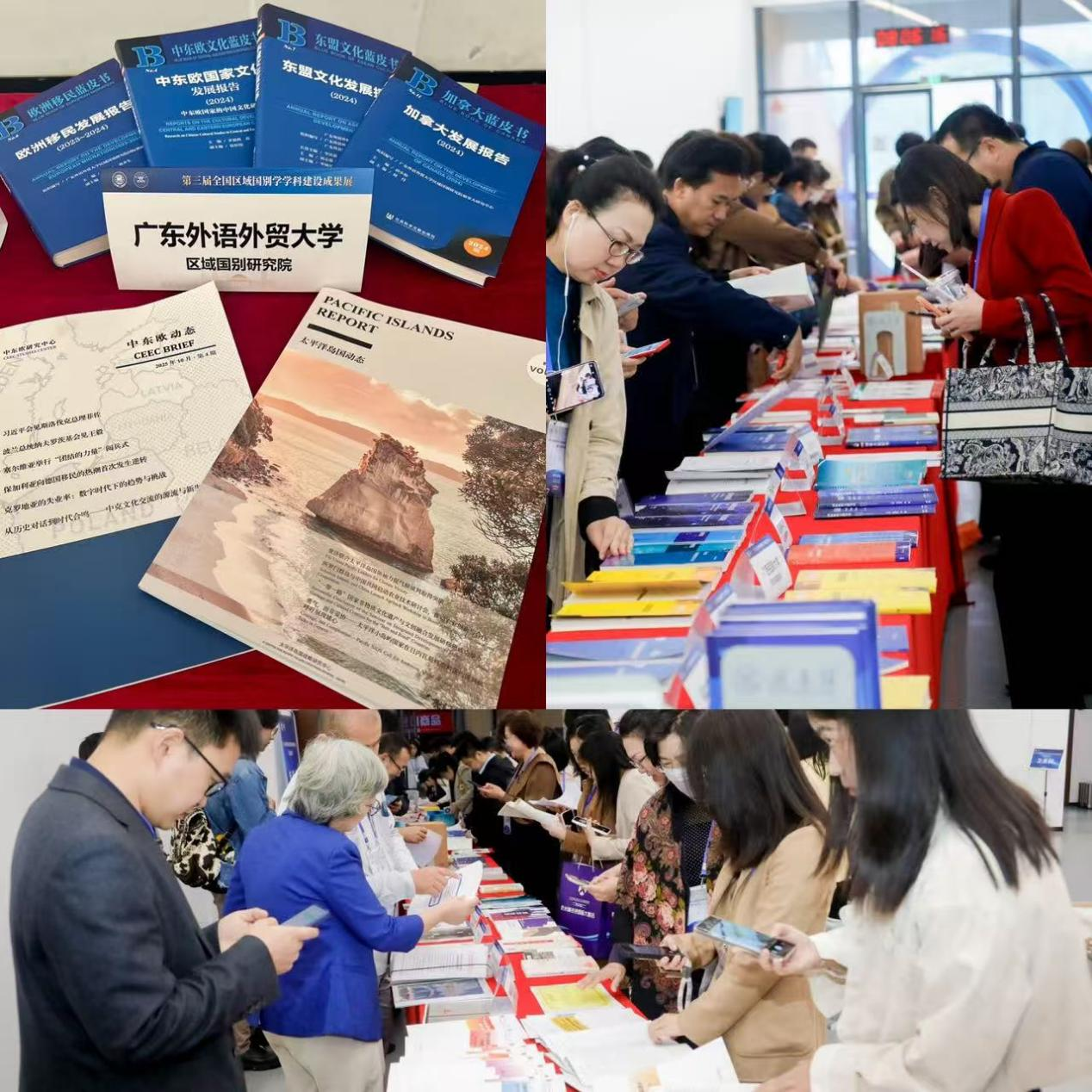 会议同期举办了第三届全国区域国别学学科建设成果展。广东外语外贸大学展出了《欧洲移民发展报告》《中东欧国家文化发展报告》《东盟文化发展报告》《加拿大发展报告》等系列蓝皮书,以及《太平洋岛国动态》《中东欧动态》集刊等成果,充分展示了我校在区域国别学研究领域的最新成果与特色实践,获得了参会专家学者的广泛关注与好评。