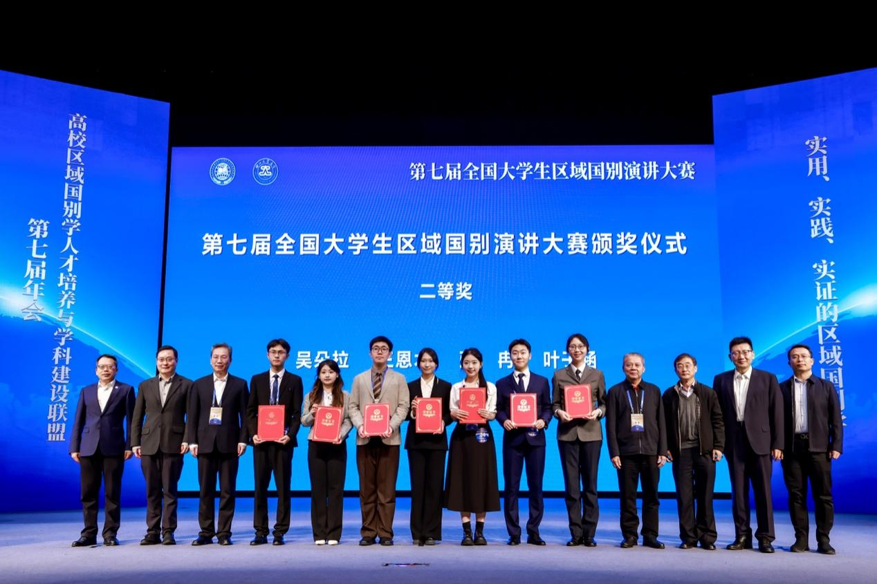 茅银辉教授还受邀担任第七届全国大学生区域国别演讲大赛复赛评委。我校共有6名学生入围复赛,其中区域国别学院捷克语专业2022级学生张冉表现优异,在复赛和决赛的环节分别以《文明交流互鉴:青年的时代使命》和《与中国同行就是与机遇同行》为题进行了精彩演讲,荣获二等奖;区域国别学院因出色的组织工作荣获本次大赛的“优秀组织奖”。