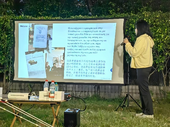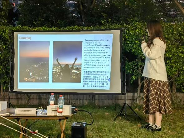 随后,希腊语系2022级学生分享了赴希腊交换学习的经历。同学们以流利的希腊语娓娓道来,讲述在希腊的生活点滴、研学见闻以及参与当地文化活动的感受。希腊语系2024级学生代表演绎了自创的希腊语歌曲,用动人的旋律和真挚的歌词,生动诠释了学习希腊语的心路历程,将活动气氛推向了高潮。