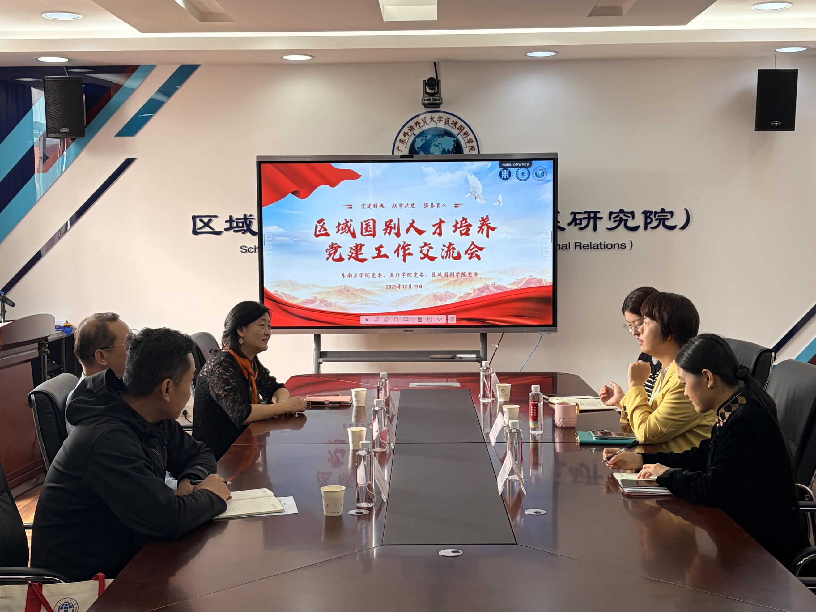 本网讯 12月19日上午,东南亚学院党委、亚非语言文化学院党委、区域国别学院党委联合举行“区域国别人才培养党建工作交流会”。会议由区域国别学院党委书记袁薇佳主持,东南亚学院党委书记李江、亚非语言文化学院党委书记梁洁以及学院党政办公室主任和组织员参加会议。
