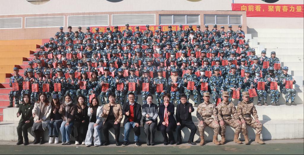 本网讯 2026年 1月9日上午,院党委书记袁薇佳、院长茅银辉、副院长王志雄、党委副书记陈健及全体辅导员、朋辈导师到白云山校区综合体育场,亲切慰问正在参加军训的2025级本科新生及承训教官。