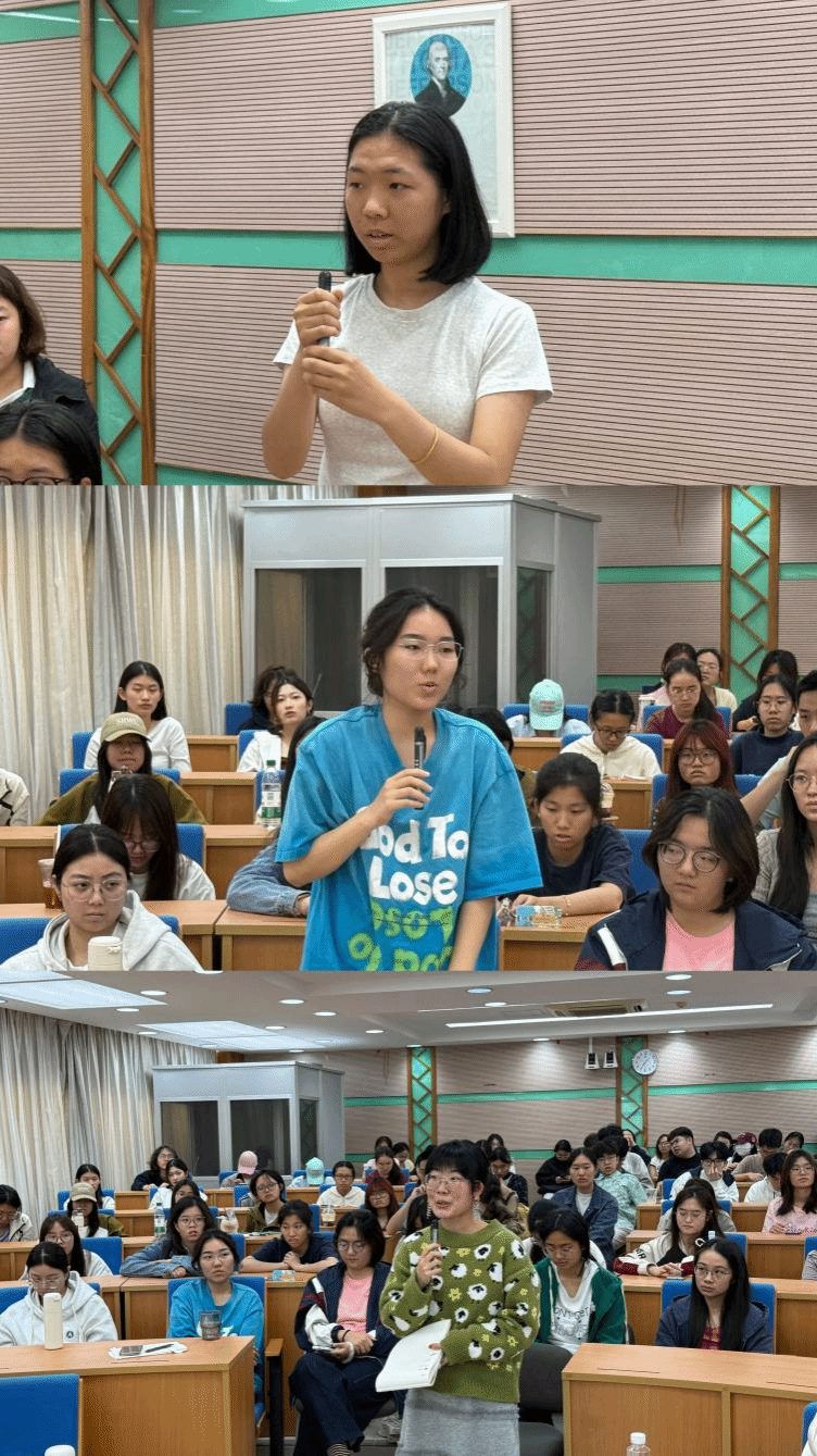 本次宣讲会还邀请了3位2023级学生代表分享他们的学习经验和感悟。国际政治专业徐黛林、外交学专业张靖怡以及国际组织与全球治理专业陈俏颖分别结合自身经历,从课程难度、学习方法、实践活动等方面进行了分享。