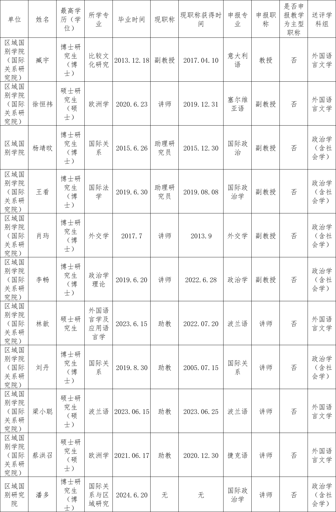 附:区域国别学院(国际关系研究院)2024申报职称评审人员名单