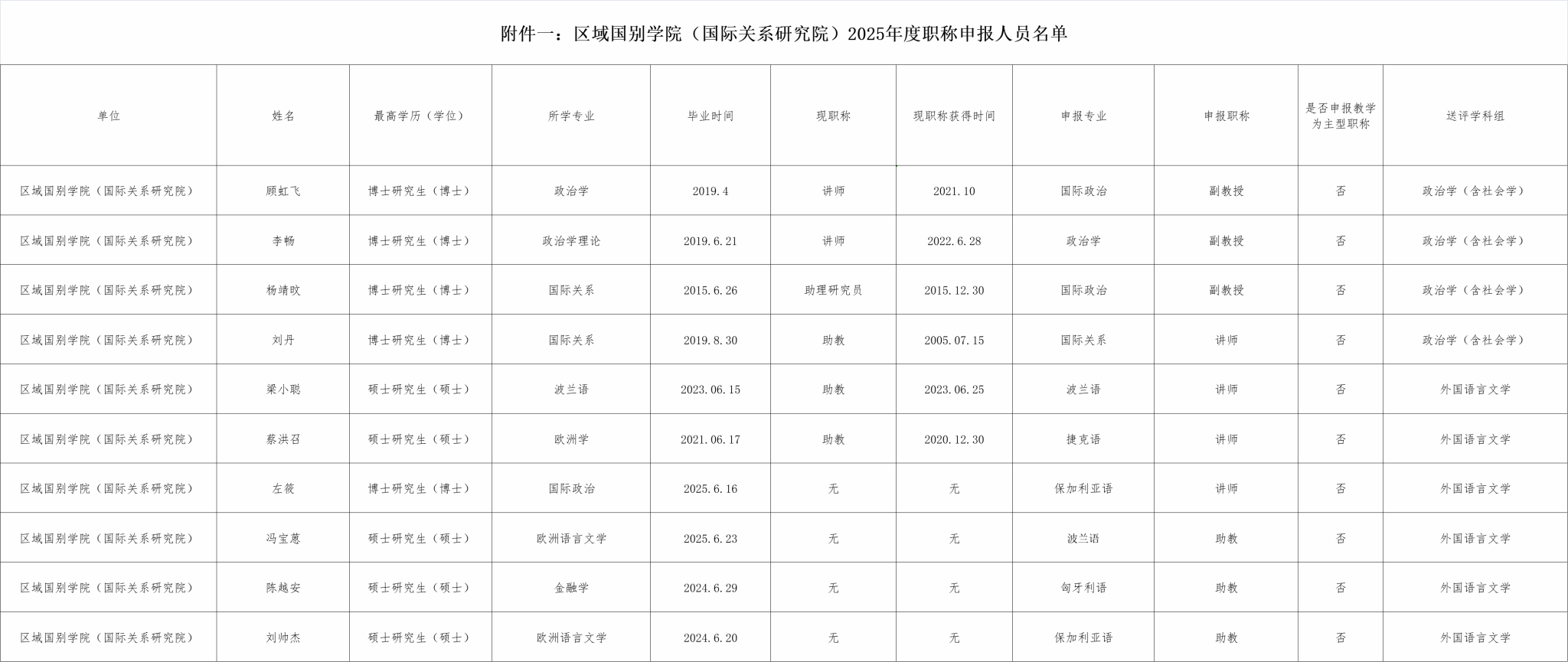 附件:区域国别学院(国际关系研究院)2025年度职称申报人员名单