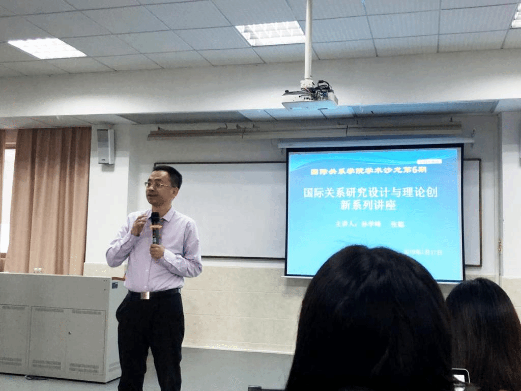 本网讯 2019年1月17日-18日, 清华大学国际关系研究院孙学峰教授与张聪博士在广外南校区D312作了关于“国际关系研究设计与理论创新”的主题讲座,副院长张秀三主持本次讲座。孙学峰教授先给师生讲解如何做好研究设计,而张聪博士则与同学们分享自己写硕士论文时的经验与挫折。
