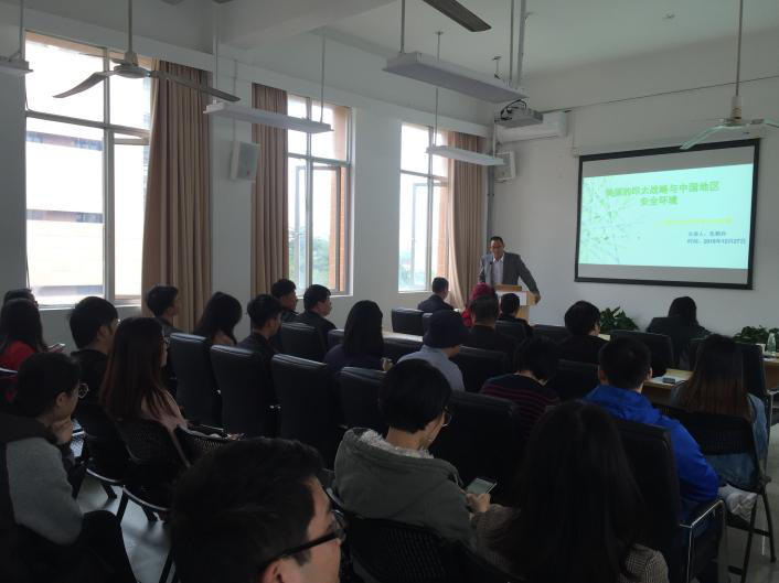 仇朝兵副研究员结合自身对奥巴马时期关于亚太地区战略政策的研究成果,向同学们介绍了“印太战略”的缘起和美国应对亚太地区战略政策的演变历程。他认为,分析一个国家的战略政策应该观察一个政府而不是一个人,要全面、多方位、多层次地看待和分析问题。在应对“印太战略”问题上,他指出战略思维对于研究国家政策制定的重要性,要用大战略视野来分析美国的政策方针,用日益增长的经济实力、军事实力和地区影响力为国家利益服务。