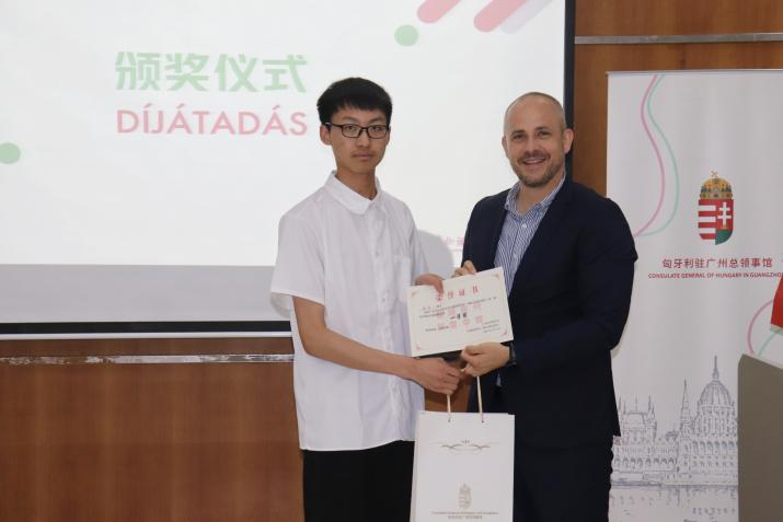 随后举行的匈牙利语诗歌朗诵比赛精彩纷呈,参赛选手们以饱满的热情和专业的语言功底,依次演绎了多首匈牙利经典诗歌作品。全体评委对选手们的表现作出了高度评价。比赛结束后,匈牙利语专业师生以中匈双语联诵匈牙利诗人裴多菲的经典诗作《我愿意是急流》,彰显文化交融魅力。颁奖仪式上,华培德总领事、罗亚当副总领事以及匈牙利语专业外籍教师马尔图斯·多丽娜(Martus Dorina)共同为获奖选手颁发荣誉证书和精美奖品。