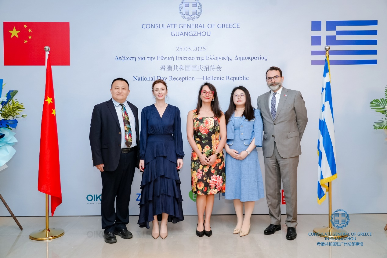 本网讯 2025年3月25日,为纪念希腊独立战争204周年,希腊共和国驻广州总领事馆举办国庆招待会。希腊驻广州总领事安吉娜(Gina Andreadi)、广东省人民代表大会常务委员会副主任叶贞琴分别在招待会上致辞。我院副院长臧宇、希腊语系师生代表应邀出席本次活动。
