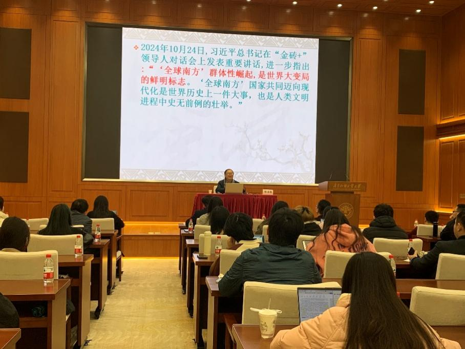 本网讯 3月7日,由我院主办,区域国别研究院承办的区域国别大讲堂第2讲在我校国际会议厅举行。上海国际问题研究院学术咨询委员会主任、研究员杨洁勉围绕“区域国别学科建设与全球南方研究”主题作专题讲座。讲座由区域国别学院、区域国别研究院名誉院长、加拿大研究中心主任唐小松教授主持。学校党委常委、副校长何传添,学院党委书记袁薇佳等近百名师生参加讲座。